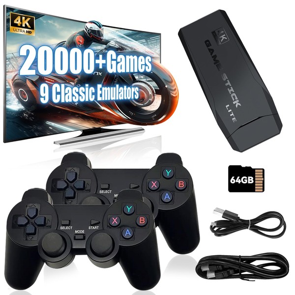 - Retro TV Video Game Console 64GB Built-in 20000 Classic Games with 2 Wireless Controllers 4K HDMI Compatible Output