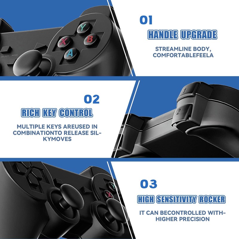 - Easy to use: simply connect the game console to the TV interface, the USB power supply data cable to the console, and the TV source is adjusted to the corresponding high-definition channel to display the playlist screen on the TV. Place the battery in the handle to control it, plug and play, simple and generous, easy to use.