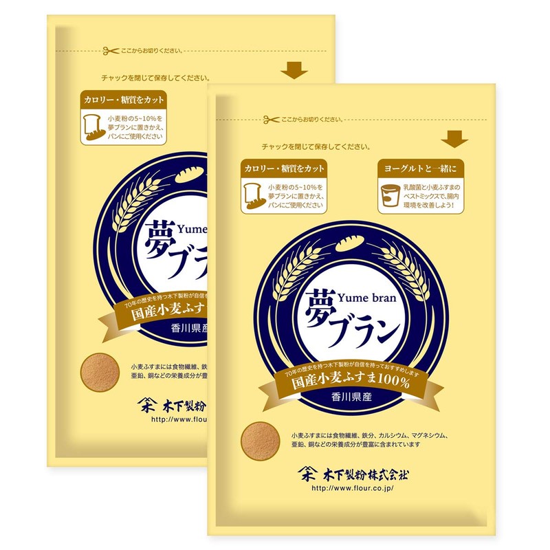 Kinoshita Milling Yume Bran, 6.3 oz (180 g) x 2, 100% Domestic Wheat Bran, Roasting, Fine Grinding