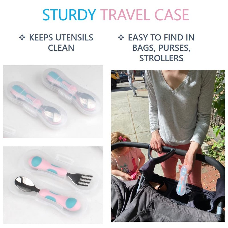 - El soporte elevado integrado aerodinámico en la parte inferior de la cuchara y el tenedor mantiene los utensilios fuera de la mesa cuando no están en uso. A los niños les encanta usar estos lindos cubiertos (es posible que no quieran dejarlos...) y a las mamás les encanta cómo ayuda hábitos alimenticios.