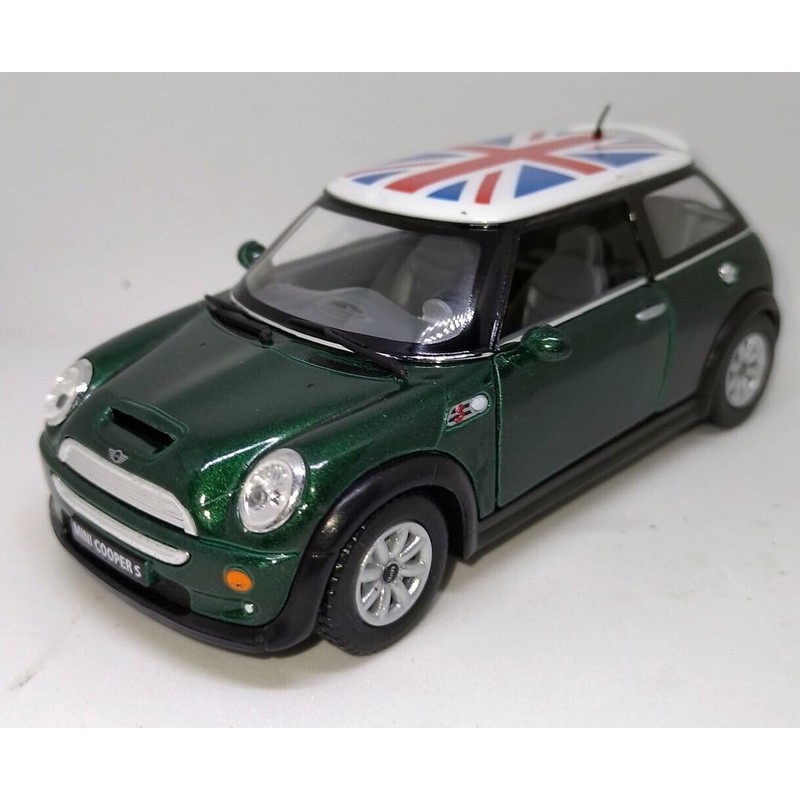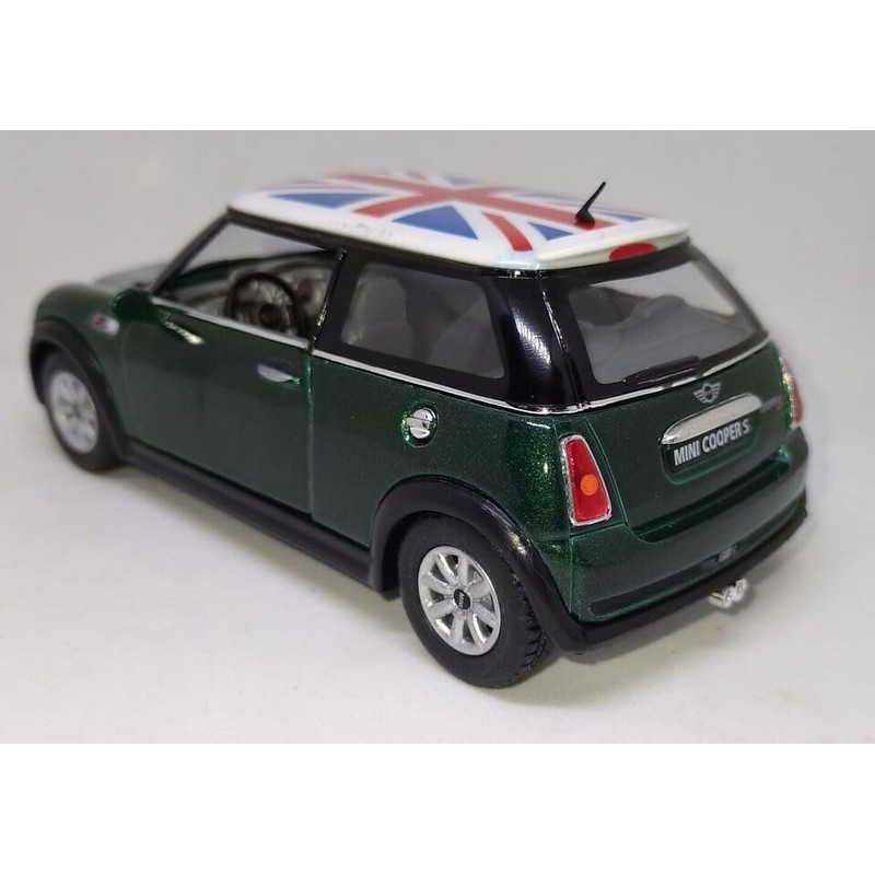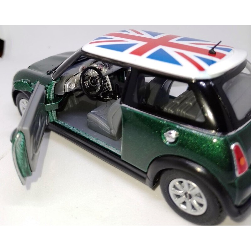 Kinsmart Mini Cooper S 5" 1:28 Scale Die Cast Metal Model Toy Car British Flag Green w/Pullback Action