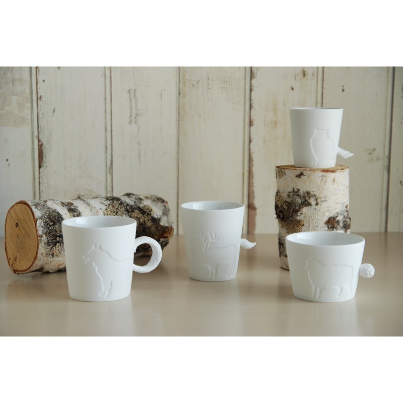 The owl is sitting on one side of the cup and embossed on the other side of the cup.