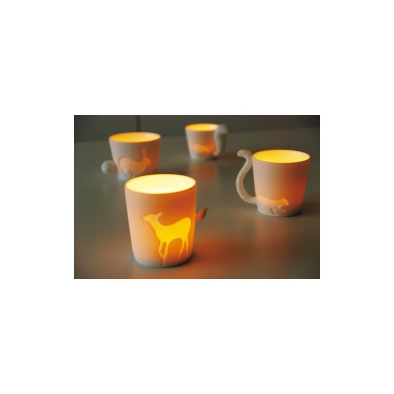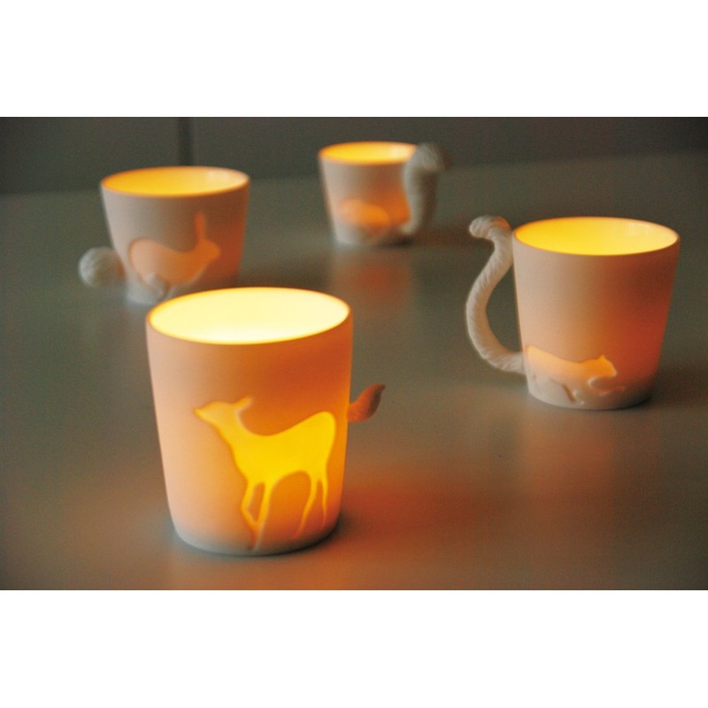 When you place a tea light in the cup, the owl will "shine" on the outside.