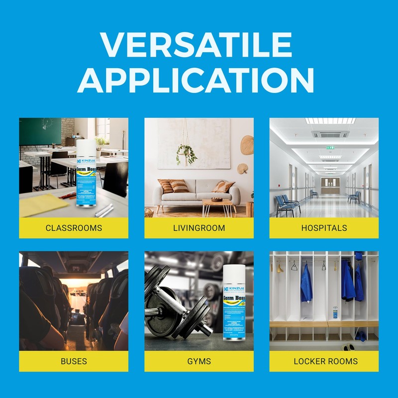 - Versatile Application: Use Germ Boss as either a handheld spray or an odor bomb fogger; Simply press lightly on the trigger for a spray or lock it down to activate the fogger; Suitable for various spaces, from classrooms and locker rooms to vehicles and hotel rooms
