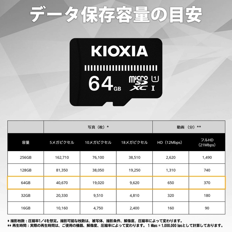 KIOXIA (Formerly Toshiba Memory) KTHN-MW064G Micro SDXC Card, 64 GB, UHS-I Compatible, Class 10, Maximum Transfer Rate 50MB/s