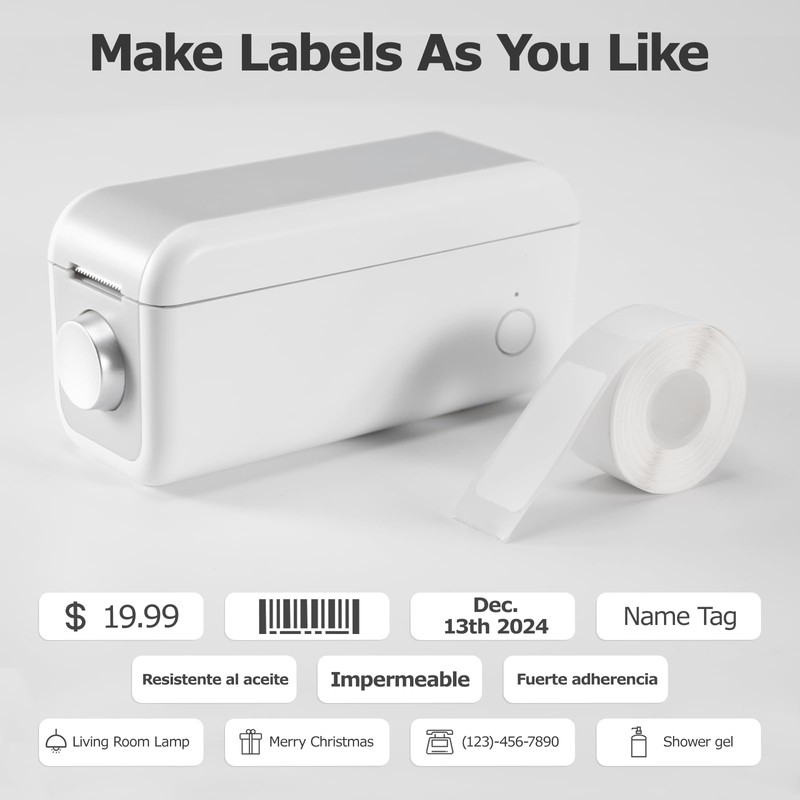 - Practical label printer: 1. Supports transparent flash labels for bottles and jars; 2. is a label printer without ink, labels can be stored longer; 3. is a compact and portable label printer that can be easily taken with you; 4. The label material in the app is constantly updated.