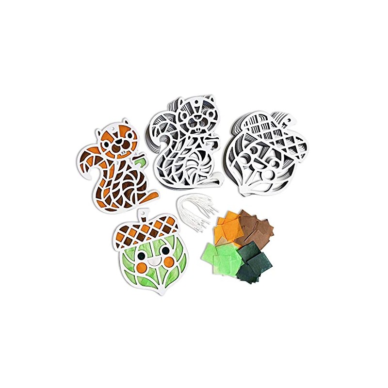 Kipp Brothers DIY Squirrel & Acorn Suncatcher Tissue Paper Craft- Great for Sunday School, Vacation Bible School, Classroom Projects & More (24 Per Pack)