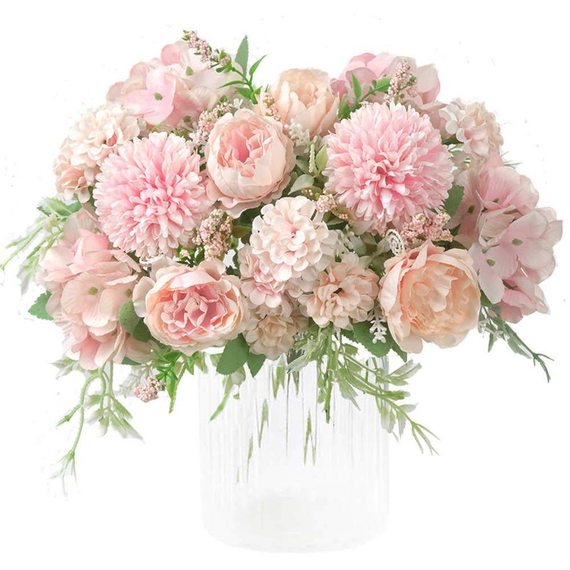 KIRIFLY Artificial Flowers, Fake Peony Silk Hydrangea Bouquet Decor Plastic Carnations Realistic Flower Arrangements Wedding Decoration Table Centerpieces (Light Pink)