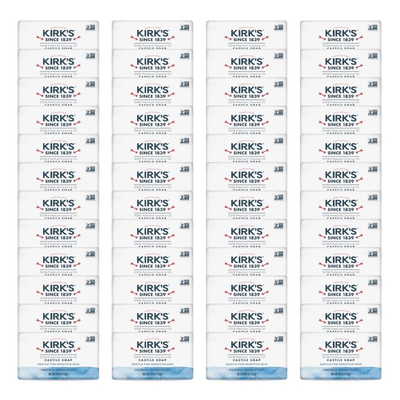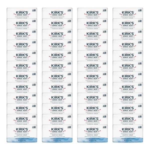 Kirk's Castile Bar Soap for Men, Women & Children - Made with Premium Coconut Oil, Sensitive Skin Formula, Vegan, Non GMO, Original Fresh Scent, 4 oz. Bars, 48 Pack