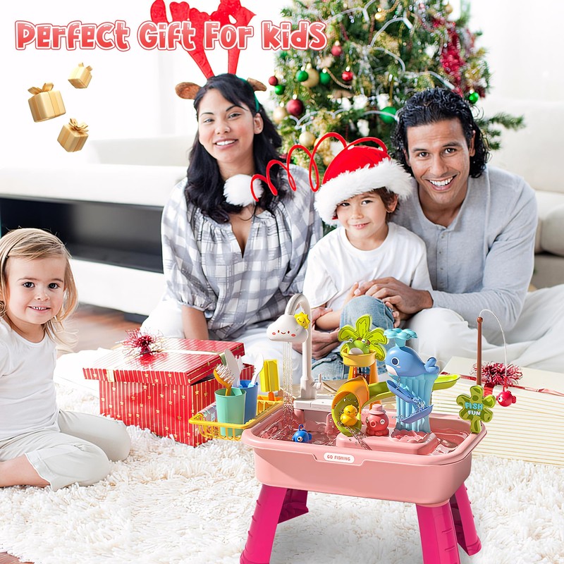 - INTERACTIVE DESIGN: This toddler water table offers endless fun with interactive features like a functional faucet, fishing game, and floating toys, creating an engaging and educational play environment. Features a water play table with working faucet, fishing game, and multiple interactive accessories including toy fish, fruits, and utensils for endless entertainment.