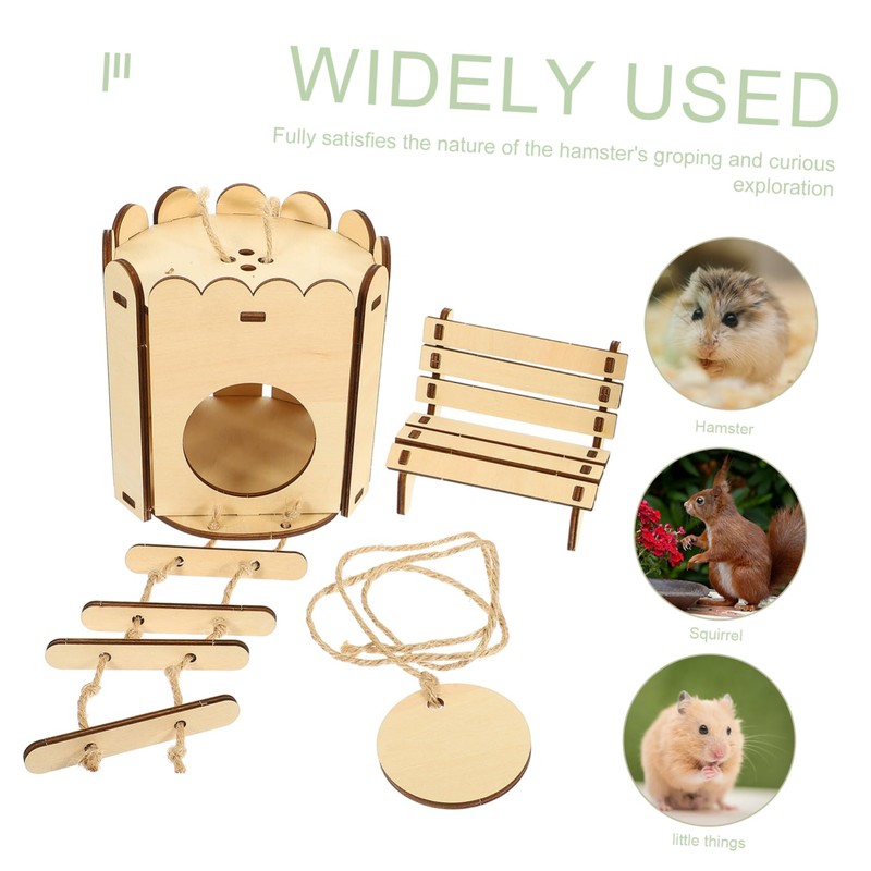 DIY wood hideout for hamster The Hamster House and chair set gives your lovely pet a comfortable place to rest and play.toys Multi-purpose hamster house, eating, drinking, sleeping, sports and many other uses, make reasonable use of space.hamster house It is suitable for hamster, guinea-pig, rabbits and other similar pets