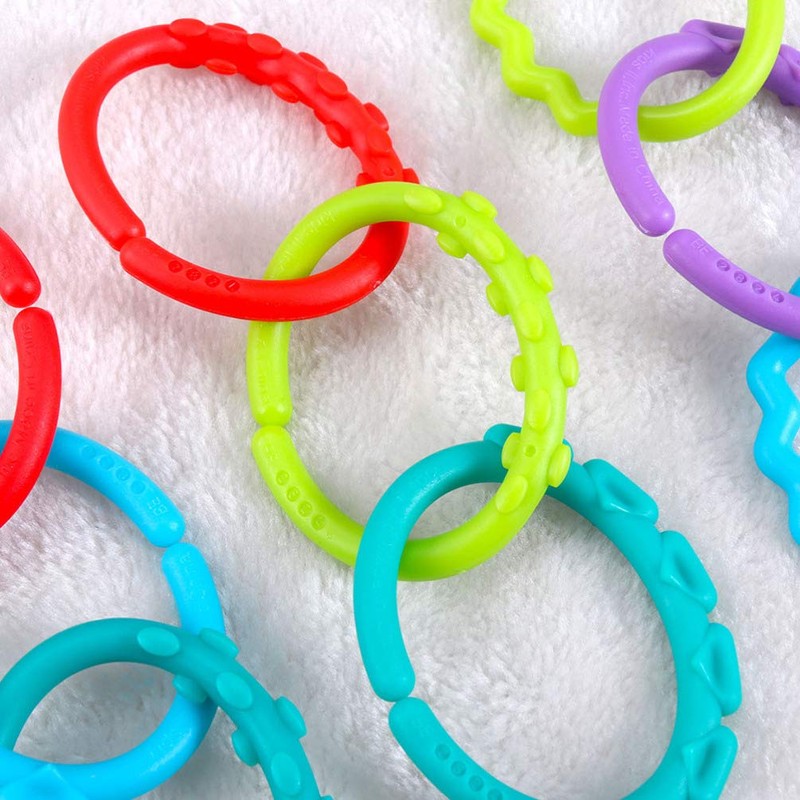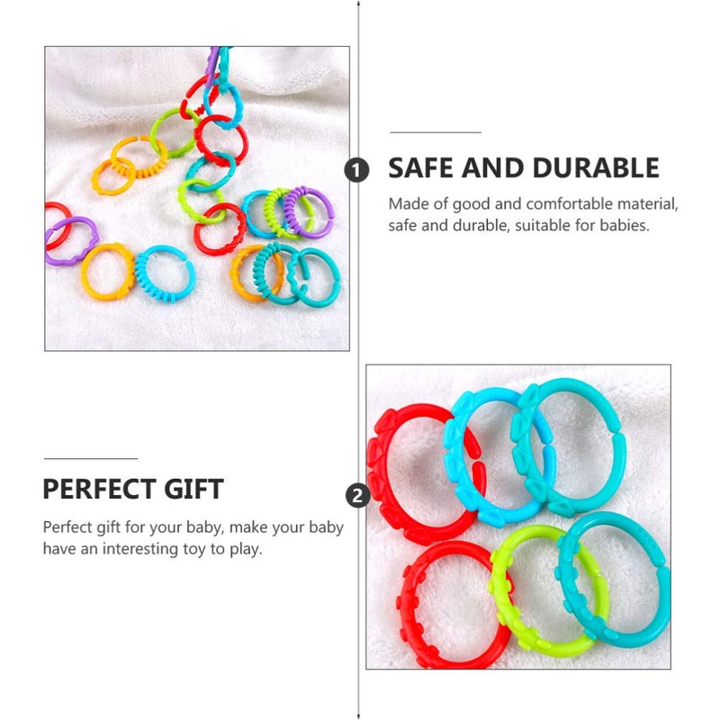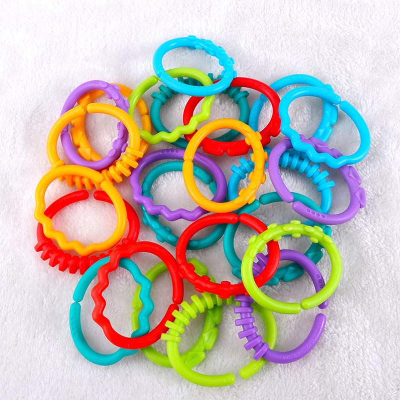 Kisangel 48pcs Rings Links Plastic Rings Colorful Round Clip On Connecting Ring for Strollers Car Seat Travel