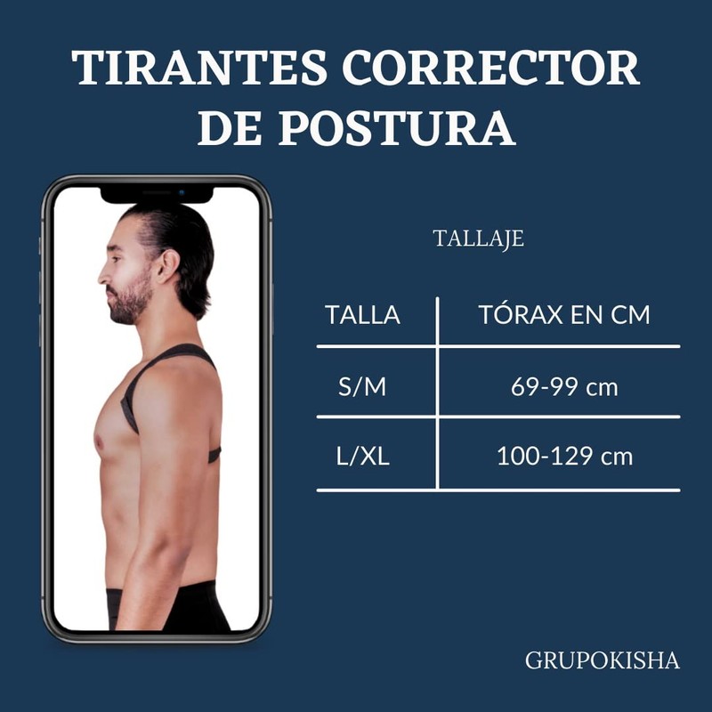 SOMOS UNA EMPRESA DEDICADA A LA REMODELACIÓN FEMENINA Y MASCULINA CON MAS DE 25 AÑOS EN EL MERCADO. KISHA fabrica con materiales de primera calidad y diseños 100% originales para moldear tu cuerpo, reducir abdomen y estilizar tu figura. EL Tirante Corrector de Postura KISHA es una prenda con sentido ortopédico, cuenta con un moderno diseño que permite mantener una postura correcta, manteniendo la espalda recta, modificando la xifosis y evitando así dolores en la espalda o desvío de la columna. Mantiene los hombros hacia atrás, con lo cual descarga los músculos que hacen esta función hasta en un 50%, rectifica la joroba (xifosis) manteniendo erguida a la persona, al rectificar la xifosis, las curvas cervical y lumbar también se rectifican, con lo que se obtiene una figura más estética, un talle más largo y elegante, sin forzar los músculos del dorso. Las tiras sujetadoras mantienen los hombros hacia atrás sin necesidad de tener contraídos los músculos encargados de esta función localizados en la espalda. Modifica y hace desaparecer la joroba. Descarga los músculos del dorso, evita la fatiga, cansancio y dolor de espalda. Hace más eficiente la respiración. Mantiene erguida la figura y hace que la persona se sienta más segura. Proporciona seguridad y confort con el objeto de brindar una protección optima a la columna, Es muy cómodo de usar, cuenta con tirantes acolchados hechos con espuma suave. trae unas correas ajustables con velcro para dar el ajuste adecuado a sus necesidades.