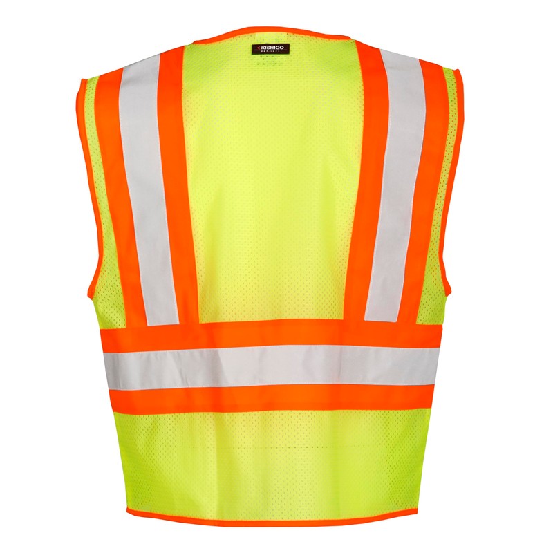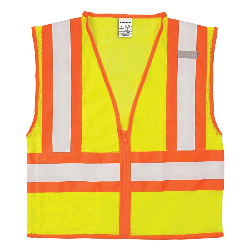 - CONTRASTING COLORS: Featuring a 2" wide high-performance reflective silver stripe and available in two bright neon colors with 4.5” contrasting trim – lime with orange trim and orange with lime trim – our Contrasting Mesh Vest aids in increasing visibility and depth perception, keeping you safer while on site.