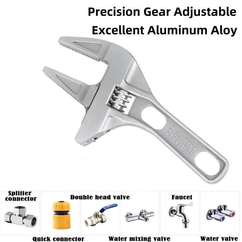 KISPATAI Multifunctional Adjustable Spanner Wrench,6-68mm Opening Wide Jaw Spanners,with Short Handle Bathroom Spanner Nut Hand Tool Repair Tool for Bathroom Kitchen.