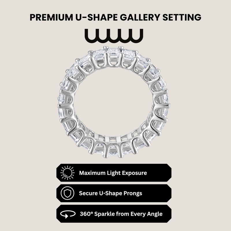 - U-SHAPE GALLERY SETTING - Advanced open gallery design allows maximum light exposure for superior brilliance. Less metal coverage means stones appear larger and more dazzling while maintaining secure, comfortable fit for daily wear.