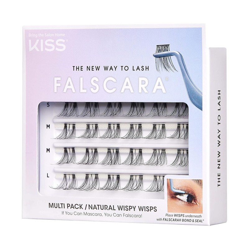 KISS Falscara Multipack False Eyelashes, Lash Clusters, Natural Wispy Wisps 10mm-12mm-14mm, Includes 24 Assorted Lengths Wisps
