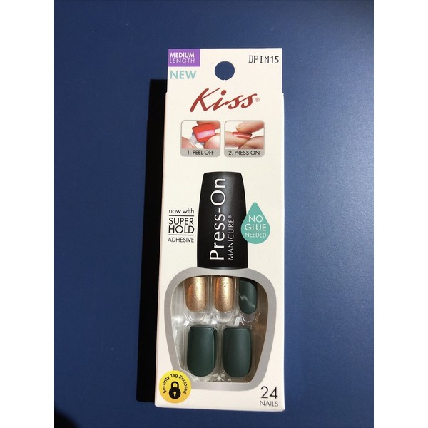 Kiss Press On Nails , Hunter Green & Matte Gold MED Length