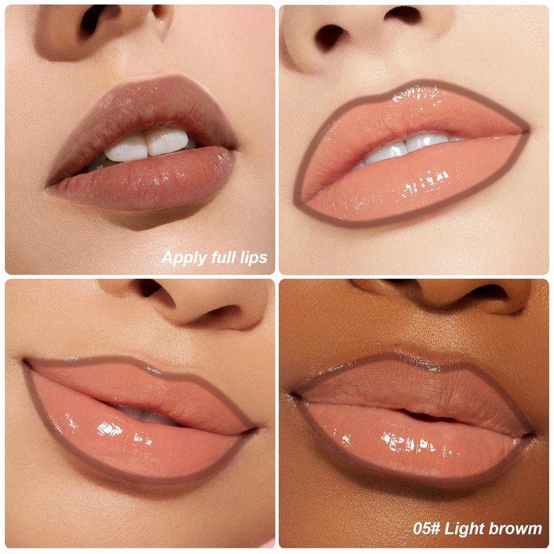 KISSIO Lip Stain Set,Peel Off Lip Liner Stain and Lip Care Oil,Transfer Proof,Long Lasting and Waterproof Lip Tint,Matte Finsh,Lip Combo,05 Light browm