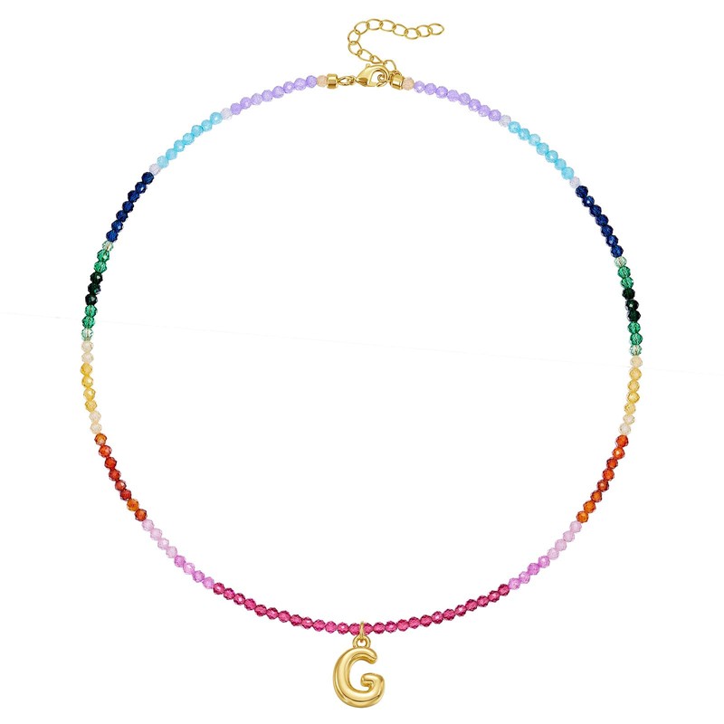 KissYan Beaded Initial Necklace for Women, 14K Gold Plated Bubble Bead Letter Pendant Rainbow Choker Colorful Summer Beach Jewelry(Gold G)