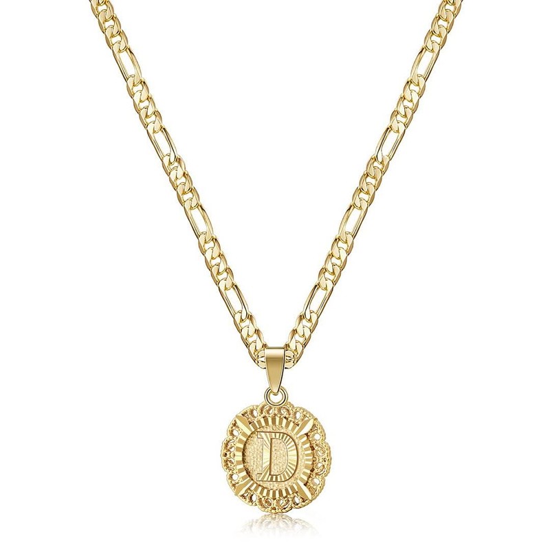KissYan Initial Necklace for Women,14K Gold Plated Round Letter Pendant Necklace Capital Monogram Necklace Alhpabets from A-Z Figaro Chain Necklace(Gold D)