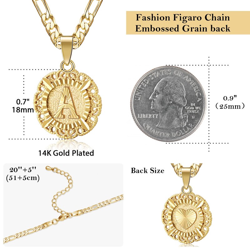 - Dimension of Necklace: Pendant size: 1.8 cm * 1.8 cm (0.64"*0.64"), Figaro Chain Length: 50 cm+5 cm=20"+2'' extender, Weight: 17 g