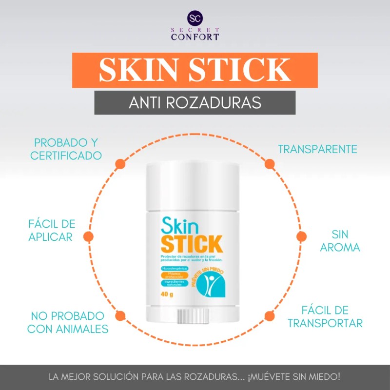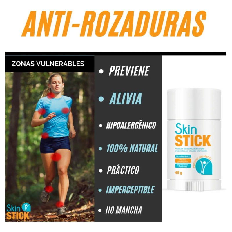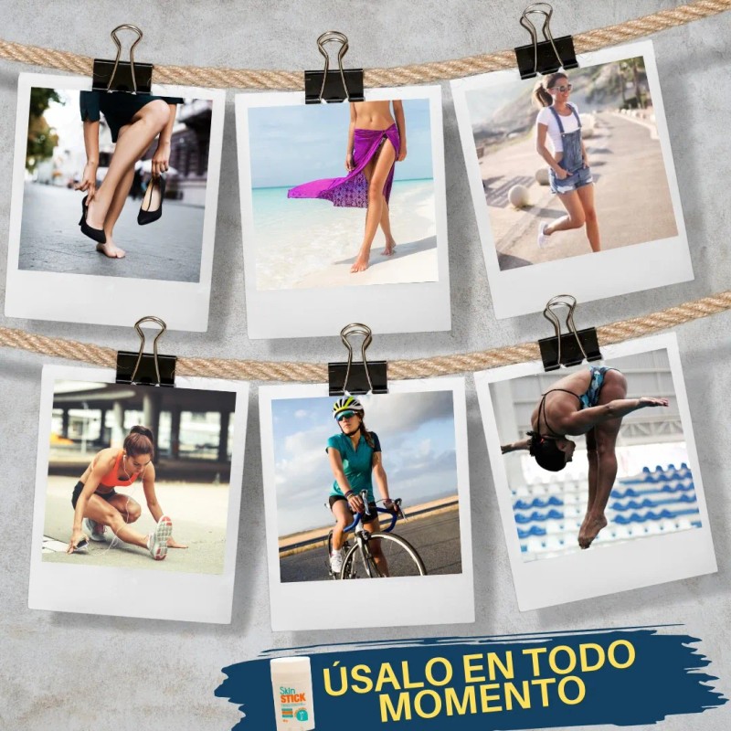 Imagina disfrutar de tus actividades favoritas, desde entrenamientos intensos hasta relajantes vacaciones, sin preocuparte por las molestas rozaduras. Con nuestro Skin Stick, protege cada rincón de tu piel, ya sea en muslos, ingles o cualquier área propensa a la fricción. 🏃♀️👗👟