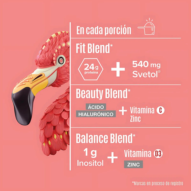 Cada porción aporta hasta 24 g de proteína vegetal con 540 mg de Svetol®, 1 g de inositol y vitamina D3 100% apto para dietas plant-based; además de Optiziome P3 Hydrolyzer® que apoya una mejor digestión y vitamina C + Zinc para complementará producción natural de colágeno en el cuerpo.