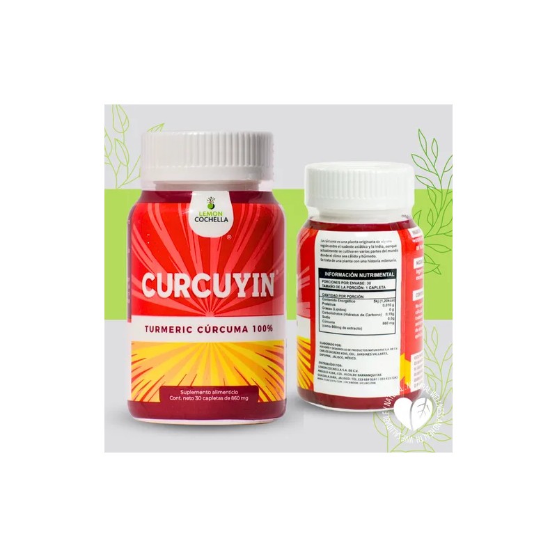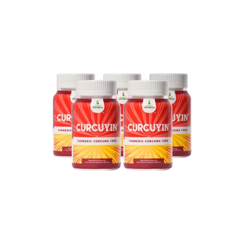 Descubre el poder de la naturaleza con el Kit de 5 Curcuyin Tumeric Cúrcuma, un suplemento nutricional diseñado para promover tu bienestar. Cada envase contiene 30 grageas de 860 mg de extracto estandarizado de Cúrcuma longa, conocido por sus propiedades antioxidantes y antiinflamatorias. Este producto es completamente vegano y libre de gluten, lo que lo convierte en una opción ideal para quienes buscan un estilo de vida saludable. Se recomienda tomar una gragea al día, preferiblemente con el desayuno, para maximizar sus beneficios. Además, su presentación en botella asegura la frescura y calidad del contenido. Con un peso neto de 250 g, este suplemento es perfecto para quienes desean incorporar la cúrcuma en su rutina diaria. A partir de los 16 años, cualquier persona puede disfrutar de sus ventajas. No esperes más para mejorar tu salud con Curcuyin.