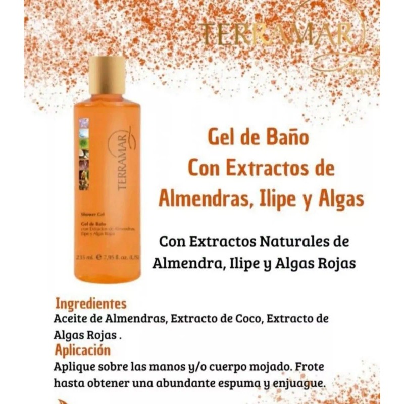 *Gel de ducha con extractos de Almendras Ilipe y Algas . Contiene 235 ml