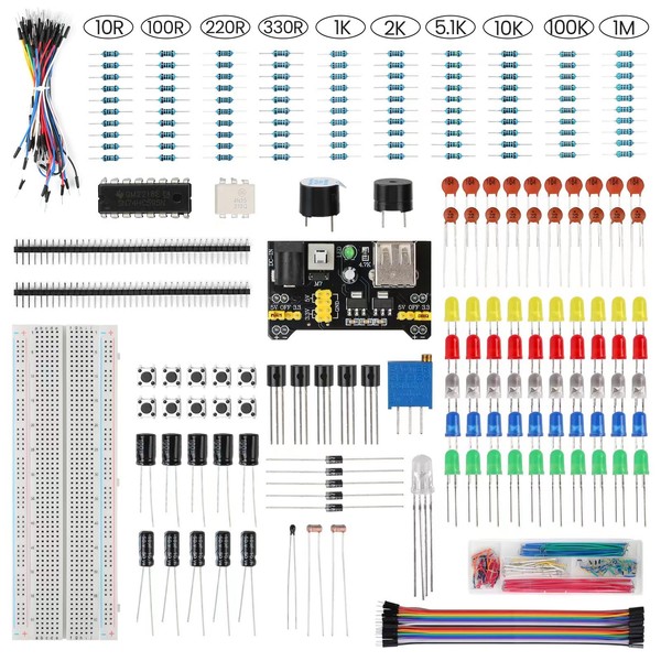 - Kit básico de diversión electrónica, perfectamente compatible con arduino, alta calidad y cantidad de componentes, cubriendo todos los componentes consumibles que se usan a menudo.