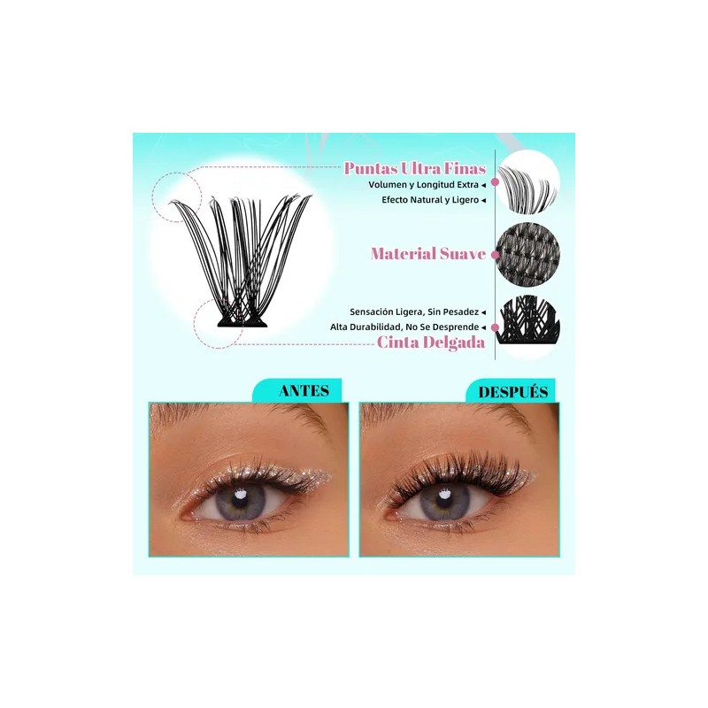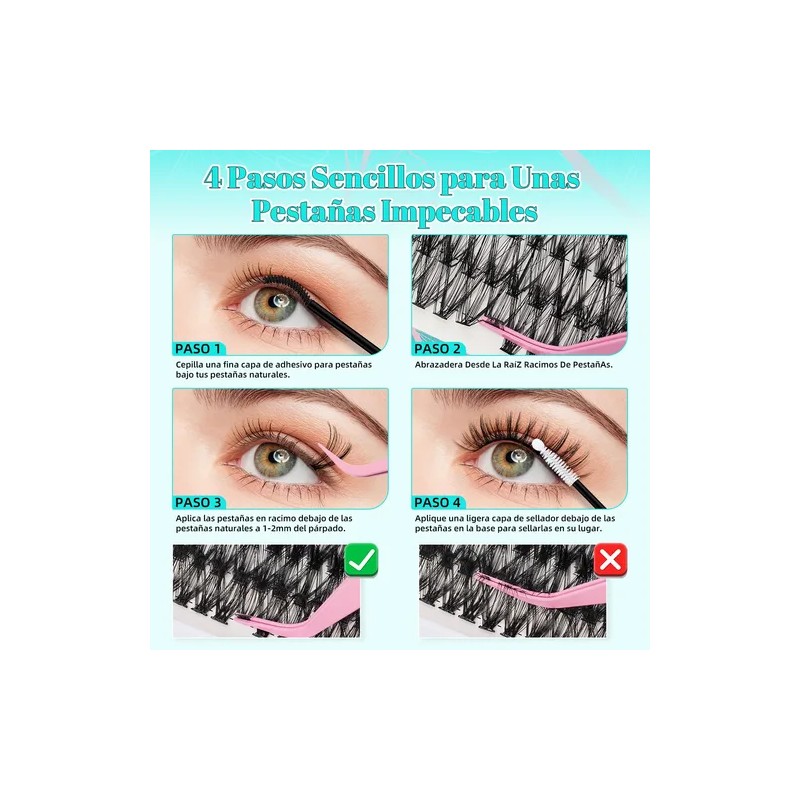 Kit De Extensiones De Pestañas Racimos Largo Mixto Uso Fácil
