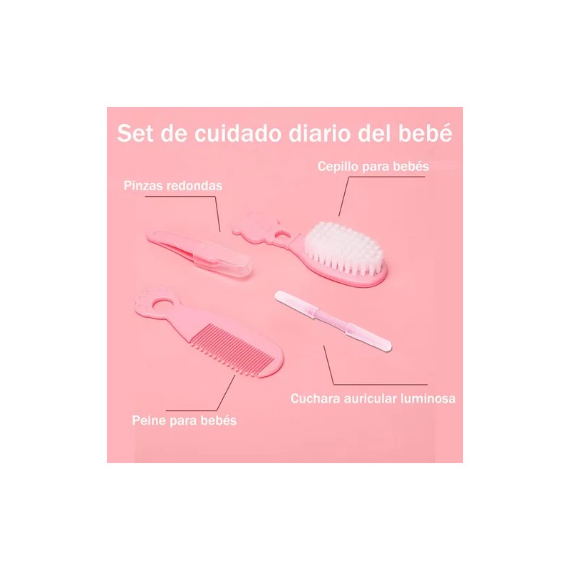 Kit De Higiene Cuidado Bebé 20pcs Termómetro Salud Manicure Color Rosa