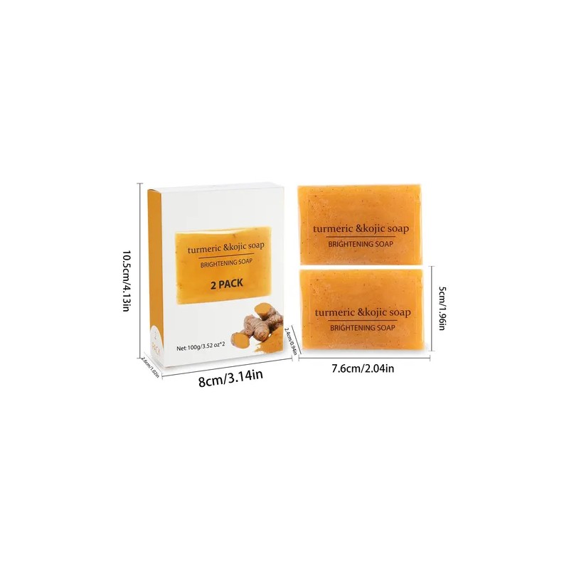 Tamaño: 7,6 x 5 cm, el paquete incluye: 2 jabones de cúrcuma