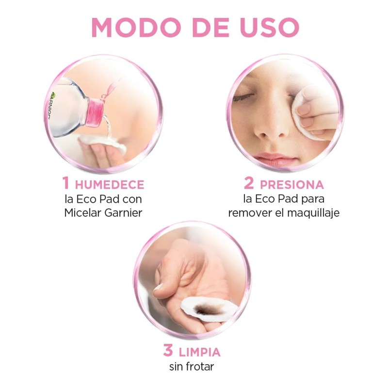 PASO 1: Limpia Cara, ojos y labios con ayuda de un algodón o Ecopad Garnier.