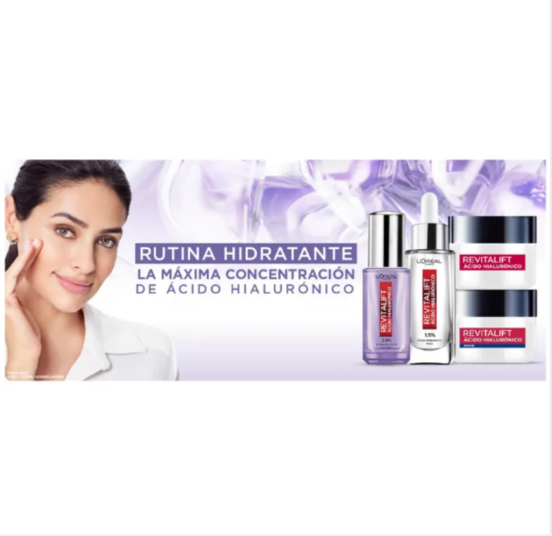 Kit L'Oréal Paris Revitalift Ácido Hialurónico Sérum rellenador facial Sérum Ojos Crema Día Crema Noche 4 piezas Hidrata intensamente y rellena líneas de expresión aprobado por dermatólogos