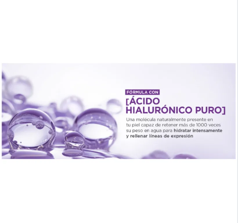 - Contiene ácido hialurónico que hidrata intensamente por 24h.