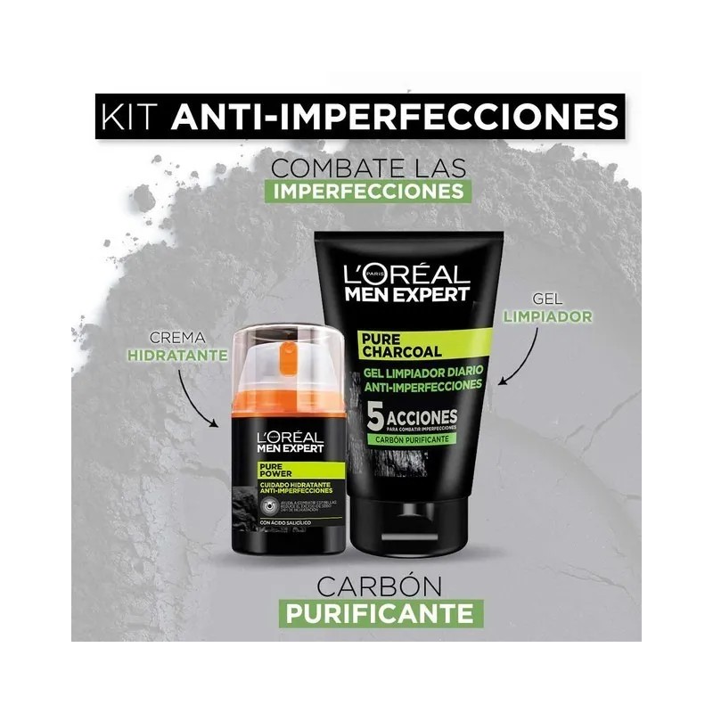 Kit Men Expert Pure Power: Crema Anti Acne + Gel De Limpieza