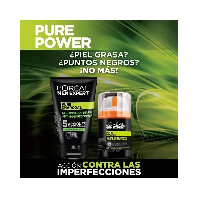 Pure Charcoal es la línea de l'Oréal Paris Men Expert que te ayuda a combatir imperfecciones. El Gel de limpieza facial actúa gentilmente con tu piel removiendo impureza. Después de la limpieza, utiliza la crema hidratante para continuar con la acción anti-imperfecciones y prevenir nuevos brotes.
