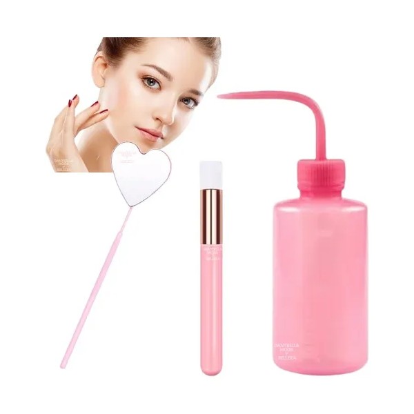 El kit contiene Una Pizeta Brocha y Espejo De corazon todo Color Rosa