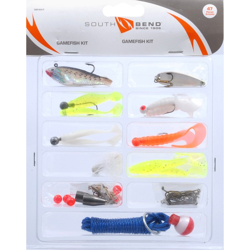 - Kit includes: rigged swim shad, spoon, rigged & unrigged shads, rigged & unrigged curly tails, beads