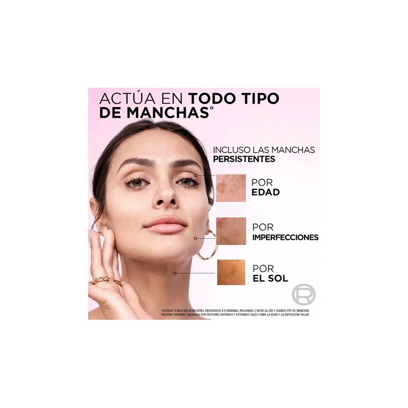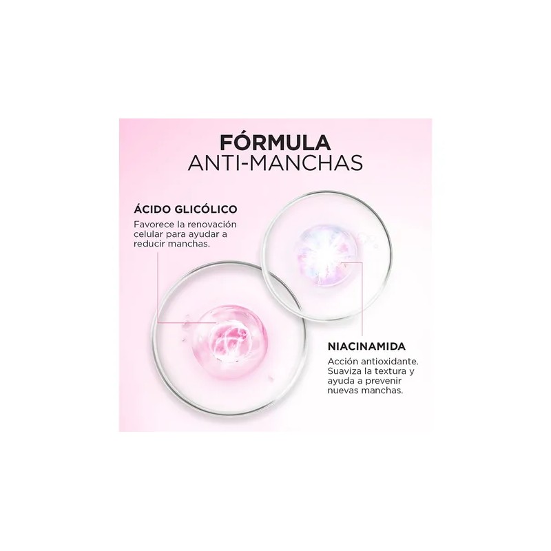 Esta revolucionaría línea cuenta con una fórmula exclusiva que combina dos de los activos más eficaces contra las manchas: 7% ácido glicólico + niacinamida para ayudar a reducir y prevenir las manchas en la piel.