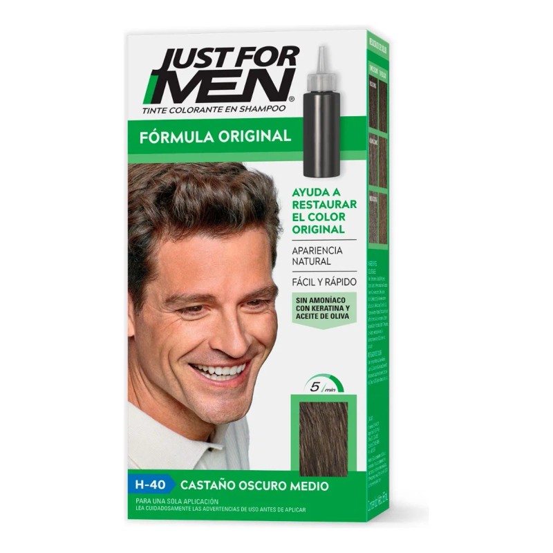 Restaura el color original (Castaño Oscuro Medio) con una apariencia natural en solo 5 minutos utilizando el nuevo Kit Just For Men: