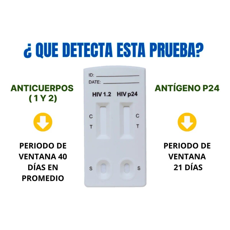 Prueba de Cuarta Generación Registrada en COFEPRIS Y Validada por INDRE para la detección de Anticuerpos del Virus de Inmunodeficiencia Humana (VIH) tipo 1 y tipo 2 y detección del Antígeno p24.