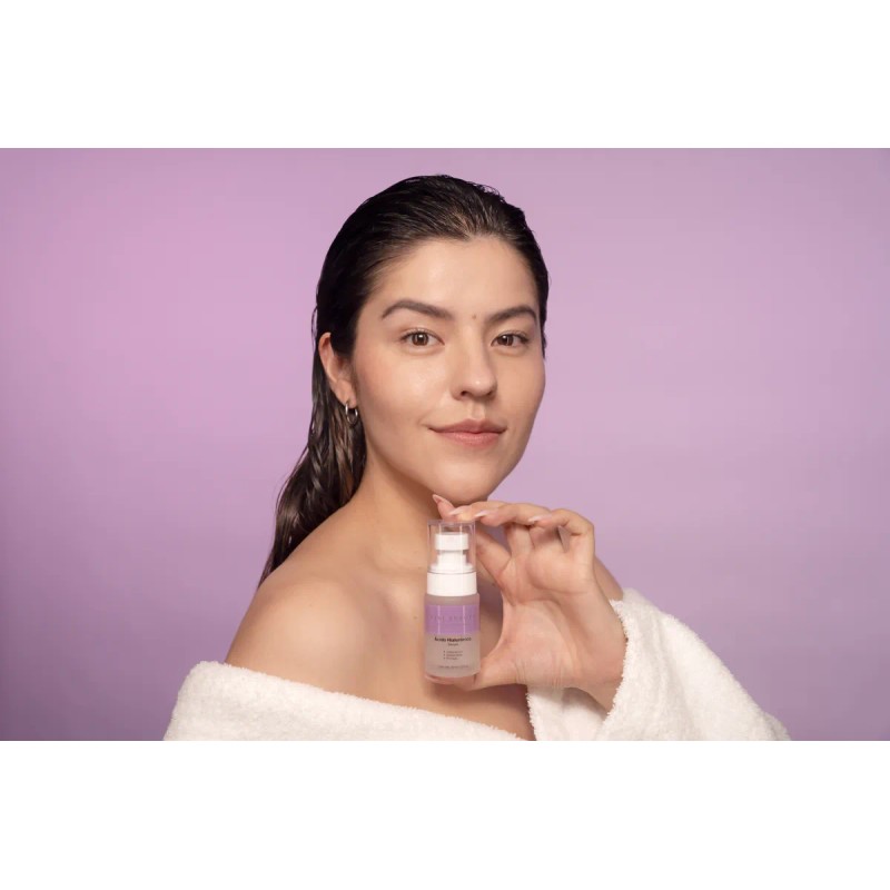 Suero facial con un compuesto de 8 formas de Ácido Hialurónico con diferentes propiedades de hidratación y retención de agua que penetran en las distintas capas de la piel proporcionando un efecto de relleno que da firmeza y elasticidad, dando como resultado una apariencia juvenil en menor tiempo. Su fórmula enriquecida con Provitamina B5, forma una película protectora en la piel evitando la deshidratación.