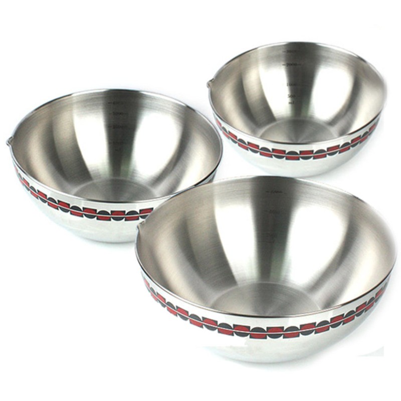 Kitchen Art Premium EX All-Stainless Steel Color Patterned Round Mixing Bowl Special Set of 3 (Special + Large + Medium) / 키친아트 프리미엄 EX 올스텐 컬러무늬 원형믹싱볼 특3종세트(특+대+중)