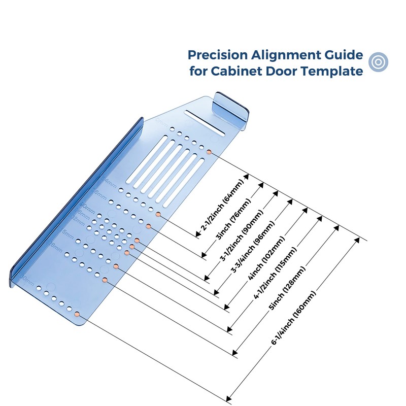 - What's included:1pc cabinet door drilling Template, 1pc Drawer Drilling Template, and 1pc 3/16" Drill Bit.