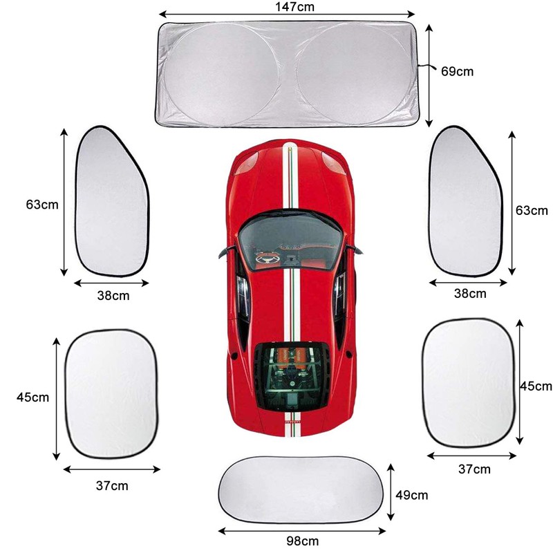 - 【Protección Integral】: Para sol automovil de 6 piezas, envuelve el parabrisas delantero y trasero y el cristal de la ventana lateral en todas las direcciones, logrando la máxima cobertura para su vehículo. Universalmente adecuado para todo tipo de vehículos como SUV, camiones y coches.
