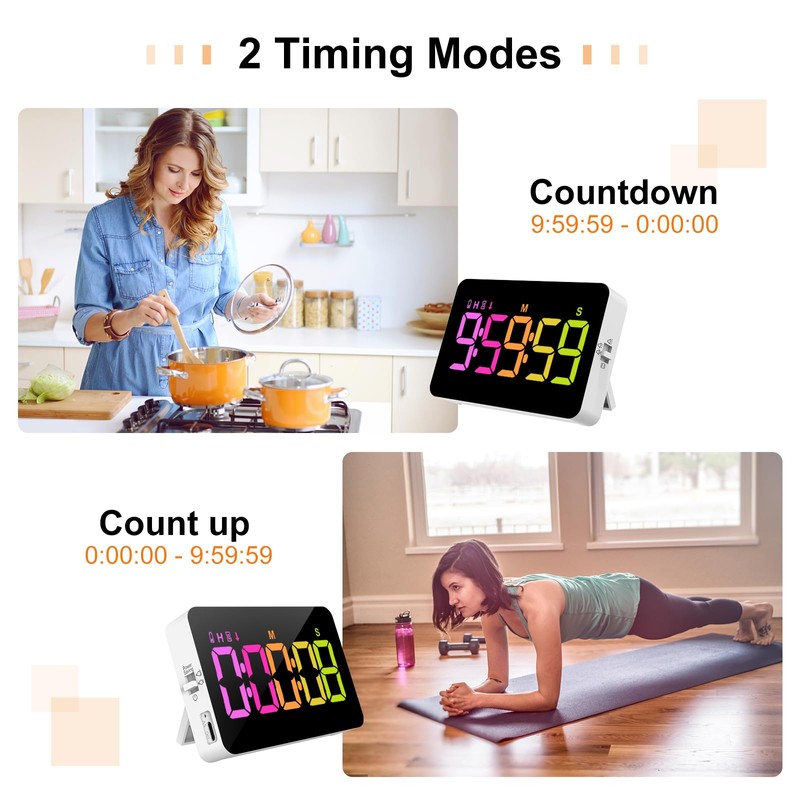 Kitchen Digital Timer, Count Down Up, Rechargeable, Vibration Mode Adjustable Volume and Brightness LED Display, Time Management Cook, Desk, Kids Adults Study Teaching, Kitchen Gadgets
