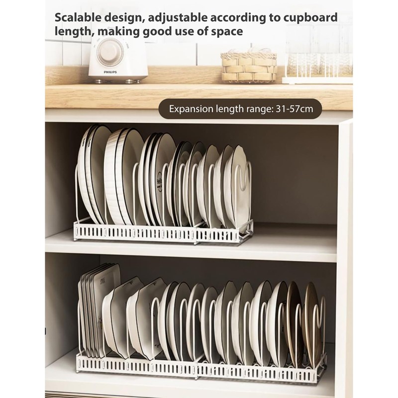 Upgrade your kitchen organization with the Adjustable Kitchen Dish Rack. This multifunctional metal bowl holder is designed to provide maximum efficiency and convenience. With its retractable design, it can be adjusted to fit your cabinet perfectly, utilizing every inch of available space. The rack can extend from 12.2 inches to 22.4 inches, catering to plates with a diameter of up to 26cm.